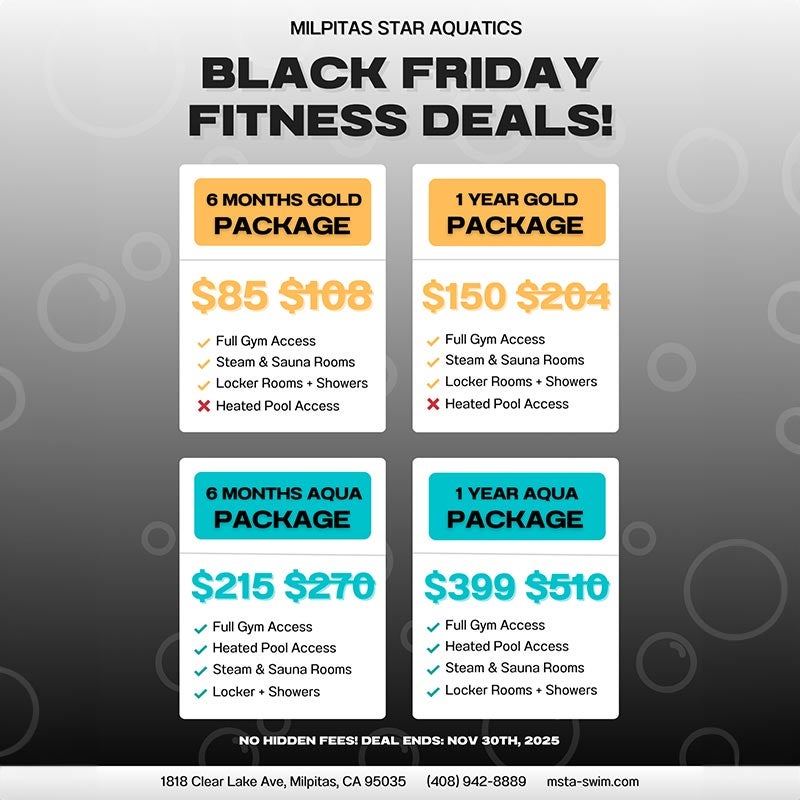 At Milpitas Star Aquatics & Fitness, we offer a variety of membership options to choose from, and you don’t have to join to use our facility. One-day passes can be purchased for our Milpitas swim facility or fitness center. The same goes for our memberships. You can choose a monthly or annual membership for our swimming facility, fitness center, or both. It’s a great way to get a workout in while your children swim!